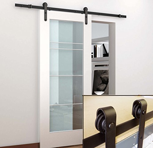 TMS® 6FT Black Country Barn Wood Steel Sliding Door Hardware Closet Set Antique Style