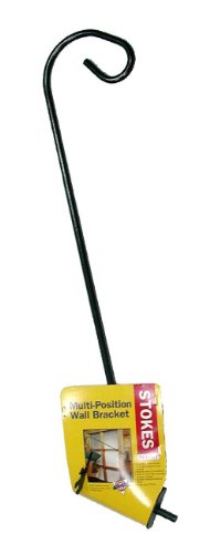 Features a wall mounted bracket that locks securely into 5 different positions; long sturdy arm that projects 20" from the bracket to the hook end will hold approximately 15 lb. Ideal for feeders, planters, lanterns, and other decorative items. Hunter green powder-coated, weather-resistant finish.