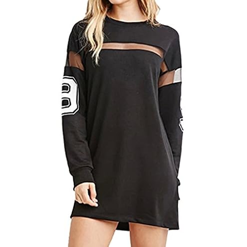 Buy Women Black Printed Baseball T-shirt Dress Splicing Long Sleeves Mini Skirt at amazon