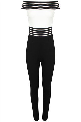 Buy Celebrity Inspired Black White Monochrme Bardot Jumpsuit UK Size 8-14 (UK 12 (EUR 40), White-Black) at amazon