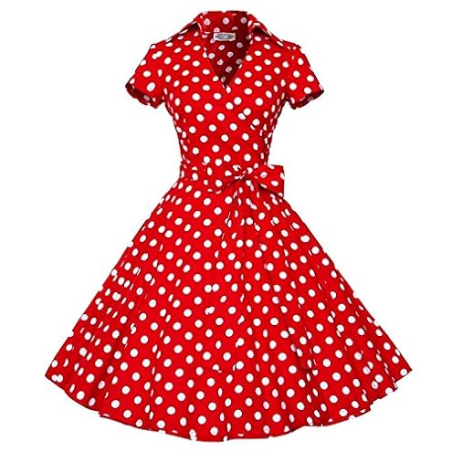 Buy Vintage Short Sleeves Audrey Hepburn 1940's Rockabilly Party Dress Red Dot M at amazon