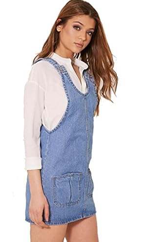 Buy Womens Blue Denim Sleeveless Dungaree Jean Pinafore Skirt Dress-Denim-RK-2064-UK16 at amazon