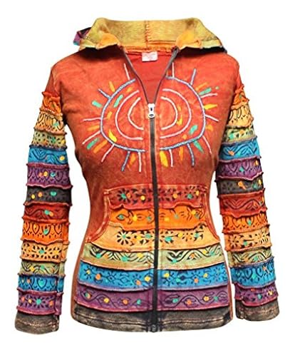 Buy Shopoholic Fashion Women's Peace Patchwork Pixie Hippy Ribs Hoodie Faded Jacket -OR-M at amazon