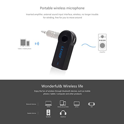 Title : Bluetooth Audio Receiver Adapter , LESHP Mini Portable Wireless Bluetooth Hands-free Car Kits Music Audio Receiver Adapter Built-in Mic Audio 3.5mm Stereo A2DP Music Streaming Car Kit for Car AUX IN Home Speaker MP3 with Mic Black