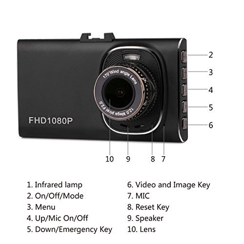 Title : GJT®GT900 Slim Car Camera Vehicle Camera Dash Cam full HD 1080P 170-degree super wide-angle lens+G-sensor Night Vision Car DVR with 3.0 inch Screen 1920X1080,Support Parking Monitoring (BLACK)