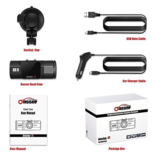 - NOTE: Since May 1,2017, the SD card is NOT included in the package. Package including: Oasser dash cam, manual, USB data cable, car charger cable and suction cup mount